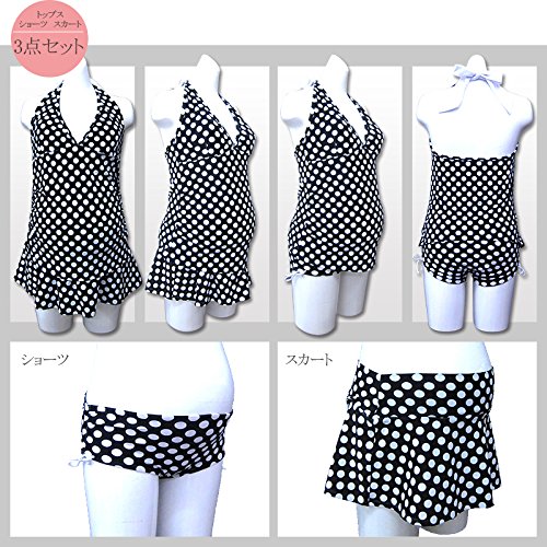 ローライズショーツとスカートの水着3点セット。