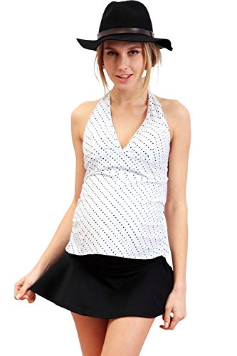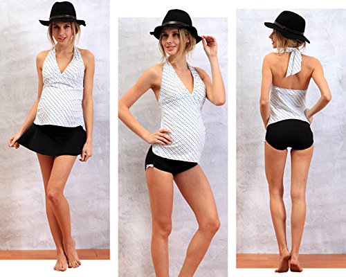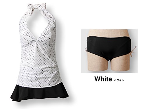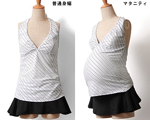スウィートマミー (Sweet Mommy) Aライン ホルターネック ワンピース水着 スカート付き マタニティ スイムウェア 3点セット L ホワイト