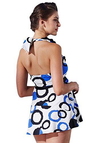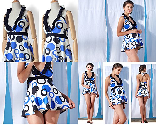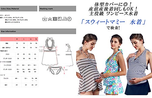 Sweet Mommy マタニティ 水着 ソフトパッド付 バブル柄 ワンピース型タンキニ デニム風ショートパンツ フリルホルターネック スイムウェア 大きいサイズ 夏 産前産後 L ホワイト