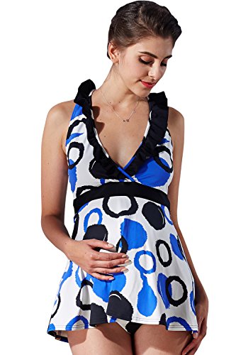 - 【美シルエットスイムウェア!】マタニティとは思えない体型カバー力!インポート風のバブル柄がとびきりおしゃれなスイムウェア
