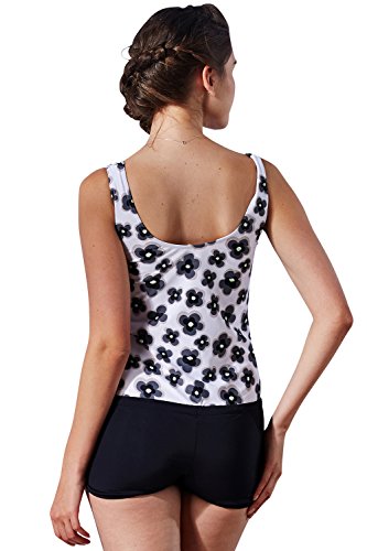 動きやすくスポーティーなデザインと、 着やせ効果抜群のブラック×ドットのようにちりばめた花柄の組合せが新鮮!