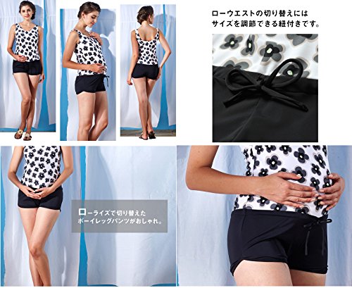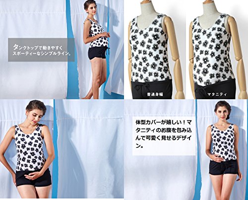 Sweet Mommy マタニティ 水着 オールインワン ソフトパッド付 モノトーン花柄 ワンピースタイプ ウエストサイズ調節機能 スイムウェア 夏 産前産後 L ホワイト