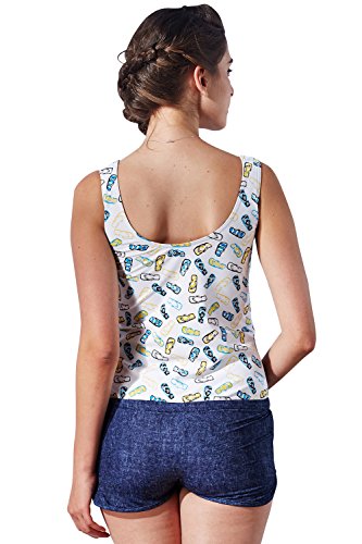 - 産前産後兼用 サンダル柄がカワイイワンピース水着!取り外し可能なソフトパッド付き。