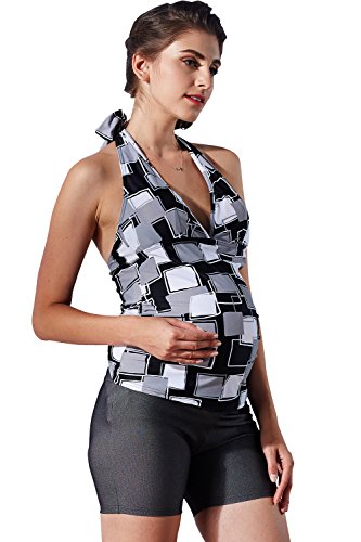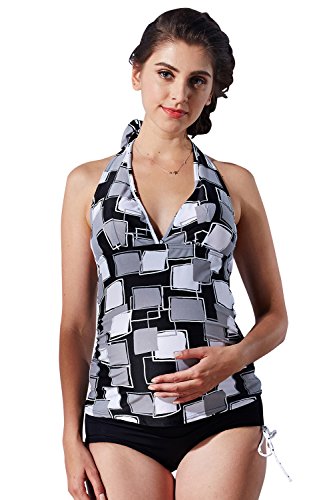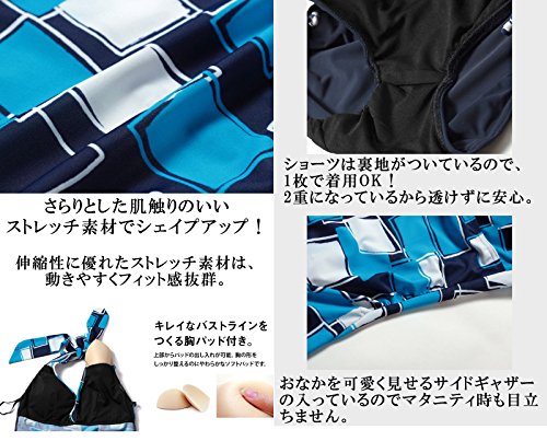 長年、マタニティママに寄り添った体型カバーのプロ!が作る、幾何学風のスクエアプリントがおしゃれなマタニティ水着です。