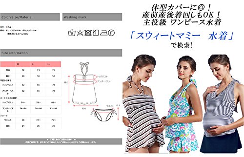 Sweet Mommy マタニティ 水着 2点セット ソフトパッド付 ワンピースタイプ ローライズショーツ ラメ入りボーダー 胸元シャーリング 裏地付き ホルターネック 大きいサイズ ウエストサイズ調節機能 スイムウェア 夏 産前産後/ブラック/M