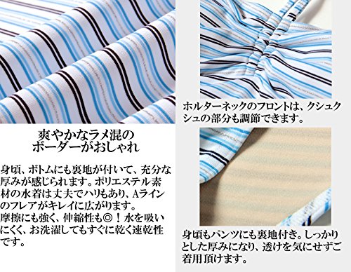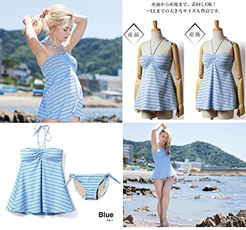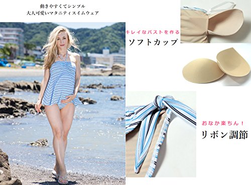 - 【爽やかブルーボーター】産前産後長く使える、着痩せAラインスイムウェア