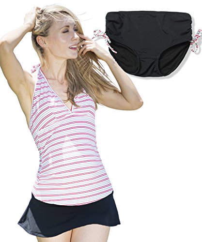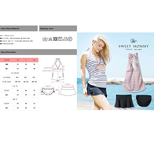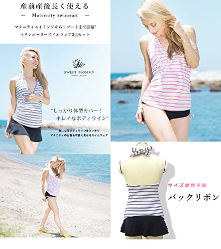 Sweet Mommy マタニティ 水着 3点セット マリンボーダー ホルターネック ショーツ スカート レッド L