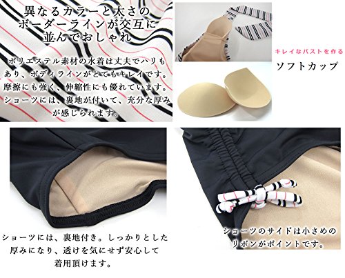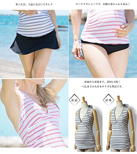 - 【産前産後長く使える】マタニティスイミングからリゾートまで活躍!マリンボーダースイムウェア3点セット