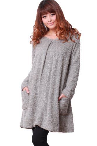 Sweet Mommy 柔らかふわもこ ブークレー 授乳ワンピ 暖か 冬ワンピース 授乳服 / マタニティ グレー