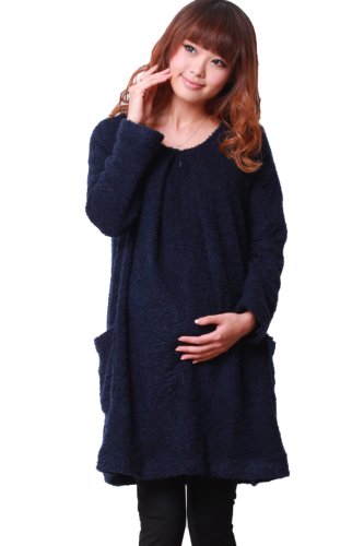 Sweet Mommy 柔らかふわもこ ブークレー 授乳ワンピ 暖か 冬ワンピース 授乳服 / マタニティ ネイビー