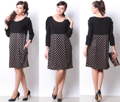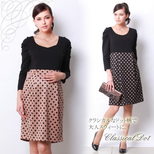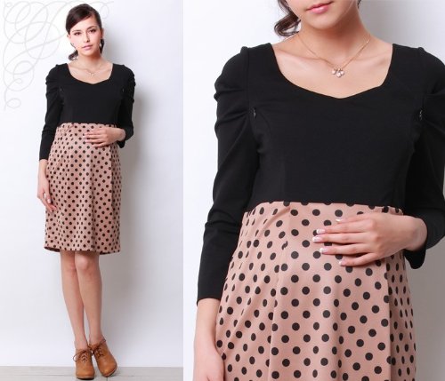 【JR京都伊勢丹コラボ】 コクーン ドット 授乳ワンピース(ステラ) 授乳服/マタニティ ゴールド M