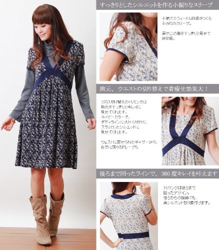 胸元のクロスデザインを効かせて、ウエストラインを高く、引き締めて見せる美シルエットが自慢の【スタイル美人】シリーズ。 同デザインに、[モノトーンドット]柄、[マリンボーダー]柄もございます。