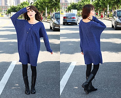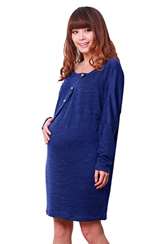 Sweet Mommy ドルマン授乳チュニック やわらかニット フロントボタン 大人可愛い 杢入りカラー ママワンピ 春 秋 冬 産前産後 授乳服 マタニティ/ブルー/F