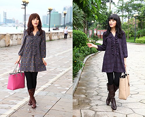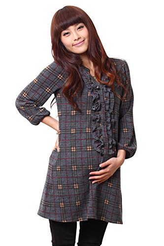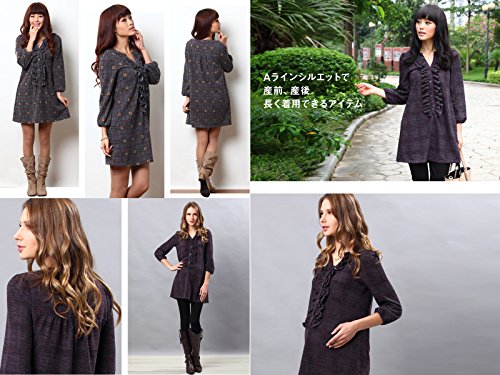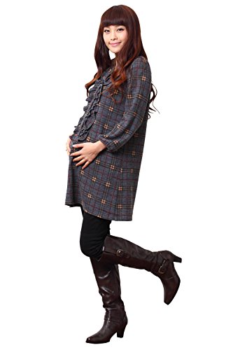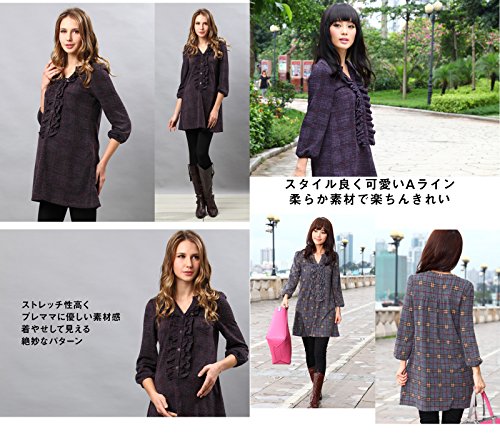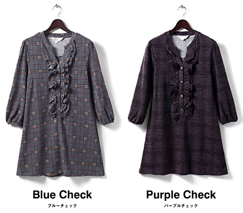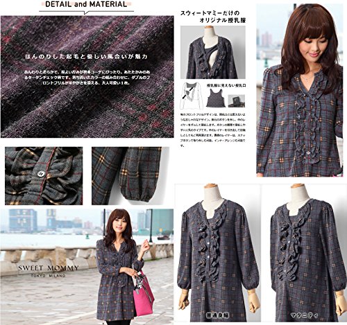 Sweet Mommy ほんのり起毛 柔らかチュニック フロントフリル 授乳ミニワンピース [チェック柄] 授乳服 マタニティ/ブルーチェック/F