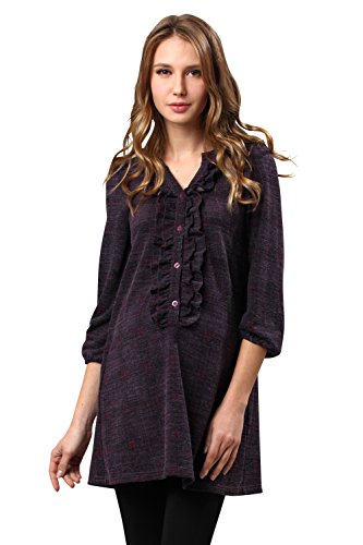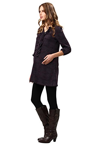 Sweet Mommy ほんのり起毛 柔らかチュニック フロントフリル 授乳ミニワンピース [チェック柄] 授乳服 マタニティ/パープルチェック/F