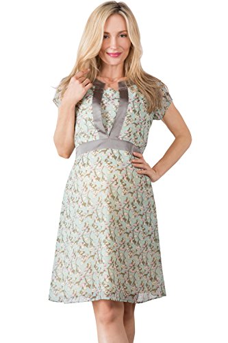 Sweet Mommy マタニティ 授乳服 ワンピース 授乳口付き シフォン 大きいサイズ 小さいサイズ コットン裏地付き フローラルプリント サテントリミング ドレス 春 夏 お宮参り オフィス 産前産後 M サックス×カーキゴールド