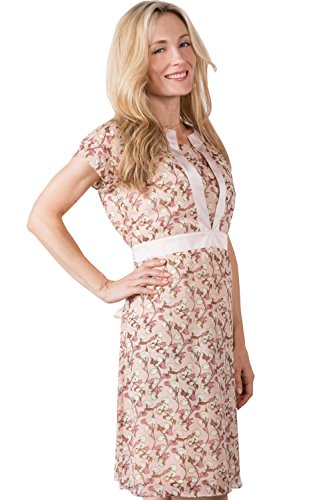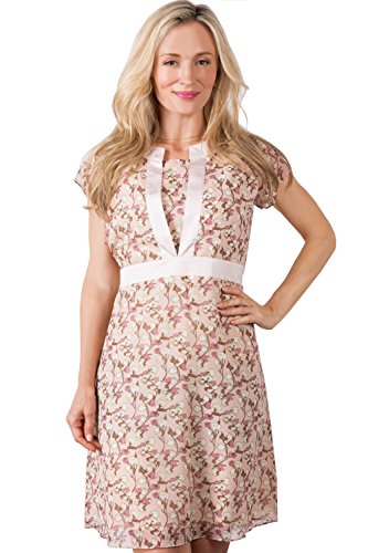Sweet Mommy マタニティ 授乳服 ワンピース 授乳口付き シフォン 大きいサイズ 小さいサイズ コットン裏地付き フローラルプリント サテントリミング ドレス 春 夏 お宮参り オフィス 産前産後 L ピンク×ベージュ