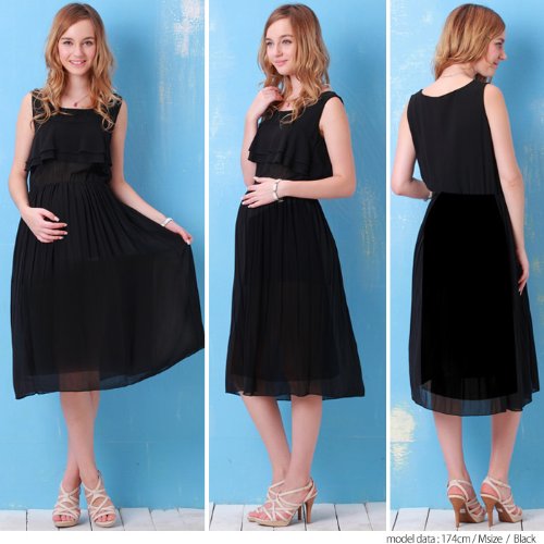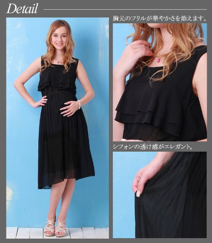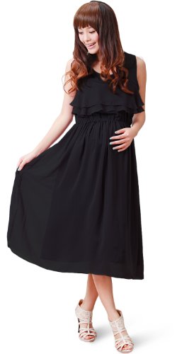 スウィートマミー 授乳服マタニティ ティアードフリル ロングシフォン授乳ワンピース/L/ブラック