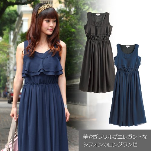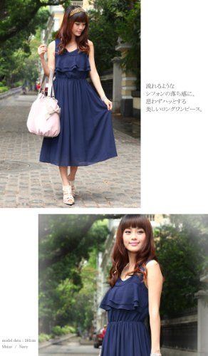 透け感のある軽やかなシフォンの、流れるような落ち感が美しいロングワンピースです。