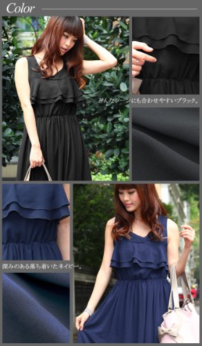 アクセサリーが映えるシンプルなラウンドネックに、胸元の重ねたティアードデザインが、女性らしい可愛らしさと、華やかさを添えます。