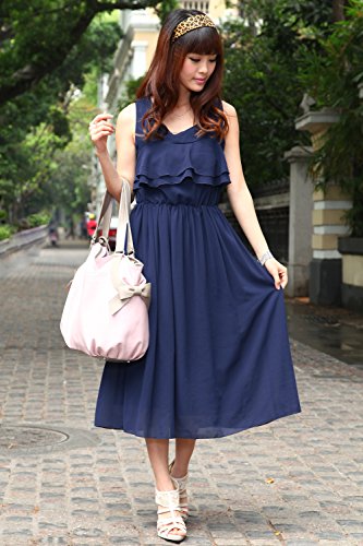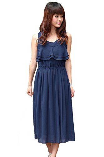 Sweet Mommy マタニティ 授乳服 ワンピース 授乳口付き ティアードフリル Wファスナー 透け感 上品シフォン 裏地付き マキシ ロングワンピ 春 夏 産前産後/L/ネイビー