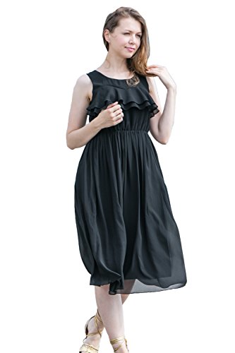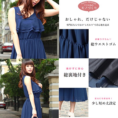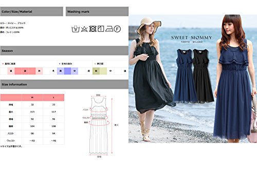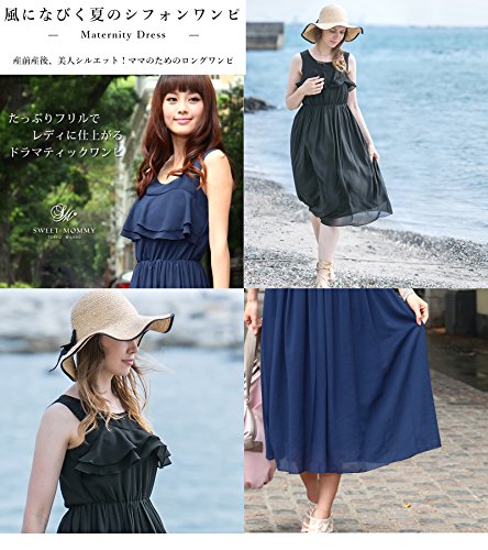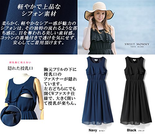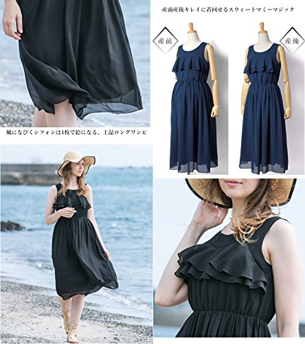 Sweet Mommy マタニティ 授乳服 ワンピース 授乳口付き ティアードフリル Wファスナー 透け感 上品シフォン 裏地付き マキシ ロングワンピ 春 夏 産前産後/M/ブラック