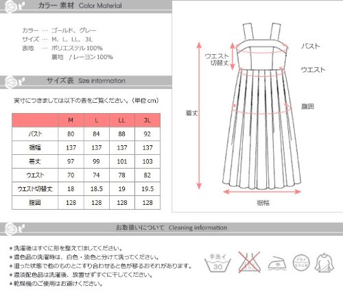 サイズ(cm):M(バスト80,裾幅137,着丈97,ウエスト70,ウエスト切替丈18,腹囲128)