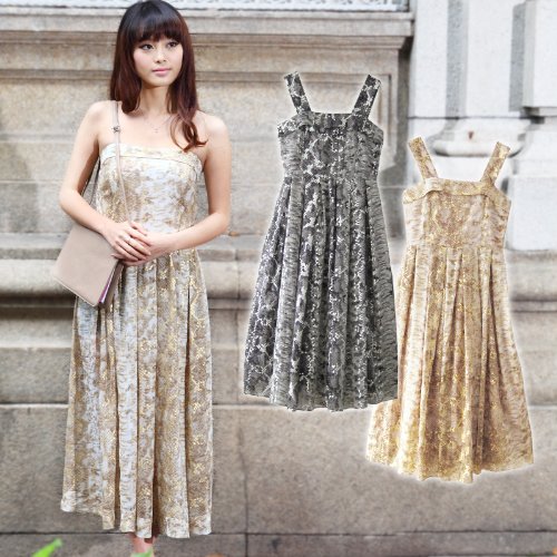 優雅な輝きを放つ、上品マキシ丈ワンピースです。