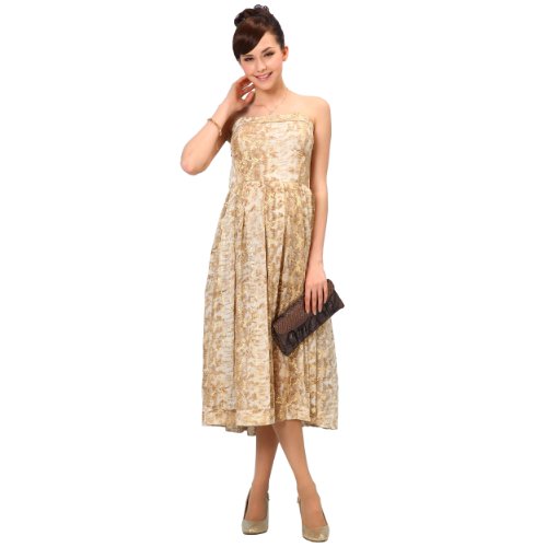 立ち姿が美しい、上品丈のベアトップワンピース。