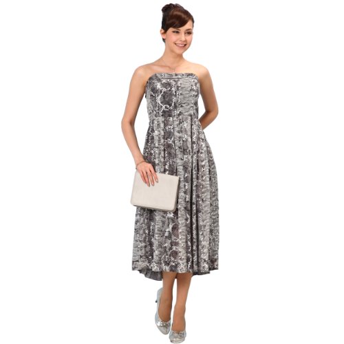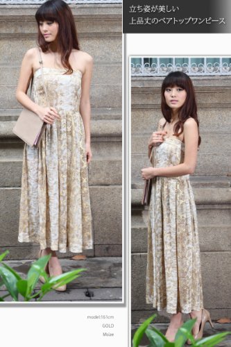 立ち姿が美しい、上品丈のベアトップワンピース。