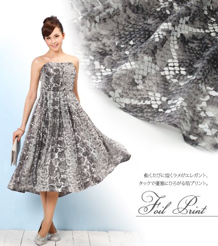 箔プリントのシフォンは動くたびに煌くラメがエレガント。