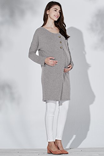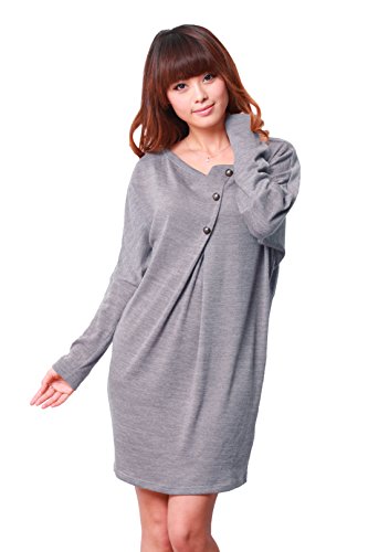 Sweet Mommy ドルマン授乳チュニック やわらかニット フロントボタン 大人可愛い 杢入りカラー ママワンピ 春 秋 冬 産前産後 授乳服 マタニティ/グレー/F