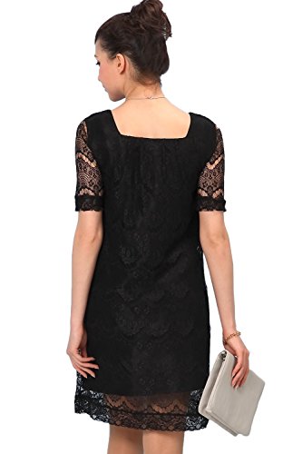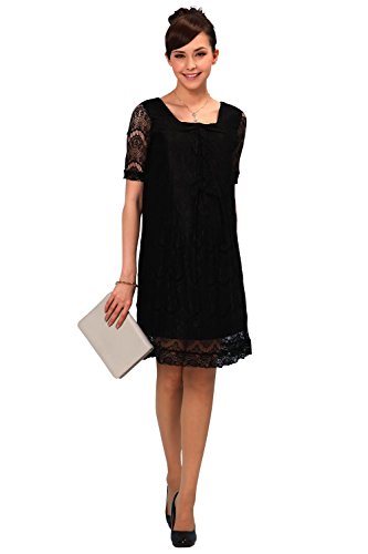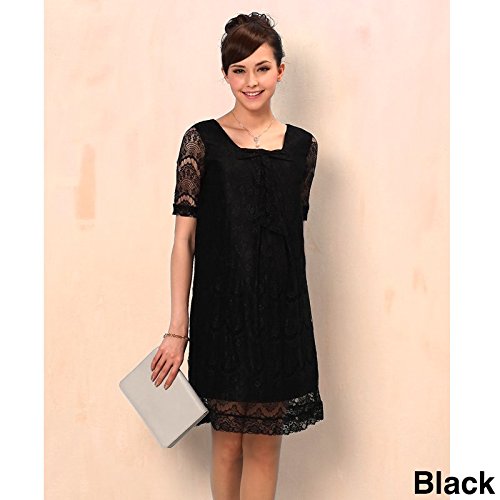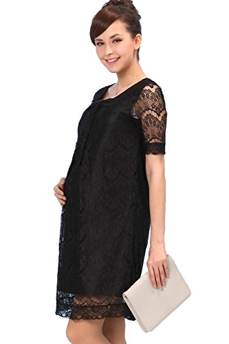 Sweet Mommy 透け感ドレス 柔らか総レース フロントリボン ワンピース マタニティ/授乳服 S ブラック