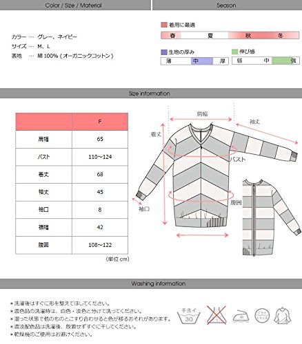 - サイズ(cm):F(肩幅65,バスト110-124,着丈68,袖丈45,袖口8,裾幅42,腹囲108-122)