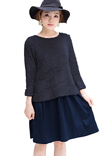 スウィートマミー (Sweet Mommy) ブークレー 重ね着風 ドッキング ワンピース 授乳服 / マタニティウェア L ネイビー×ネイビー