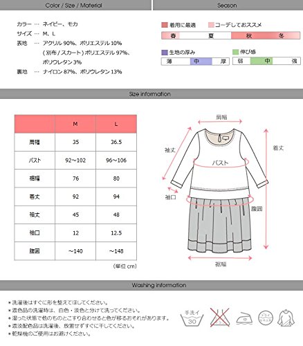 - サイズ(cm):M(肩幅35,バスト92-102,裾幅76,着丈92,袖丈45,袖口12,腹囲-140), L(36.5,96-106,80,94,48,12.5,-148)