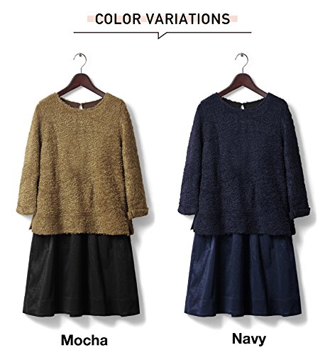 ブークレーニットと立体感のあるスカートのドッキングワンピースは