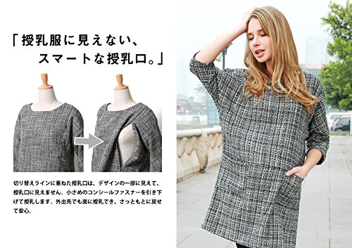 スウィートマミー (Sweet Mommy) ココツイード ドルマン チュニック ワンピース 授乳服 / マタニティ M ブラックミックス