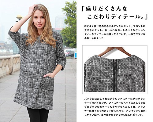 マタニティデザインには珍しい、上質なツイード生地を使ったドルマンスリーブチュニワンピ。