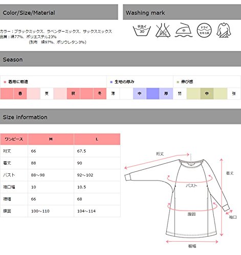 - サイズ(cm): M(裄丈66,着丈88,バスト88-98,袖口幅10,裾幅66,腹囲100-110), L(67.5,90,92-102,10.5,68,104-114)