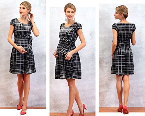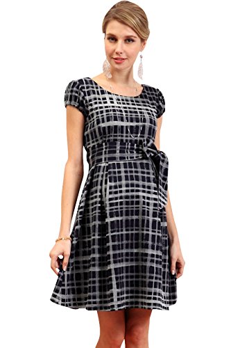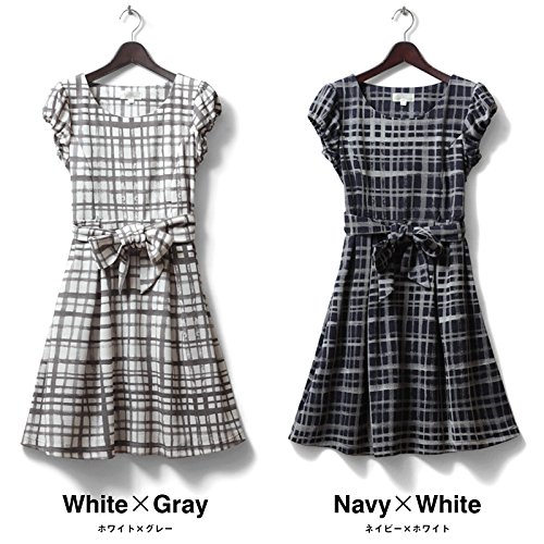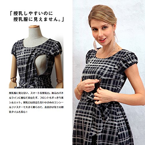スウィートマミー (Sweet Mommy) 日本製 手描き風 チェック プリント ワンピース 授乳服 / マタニティ L ネイビー×ホワイト