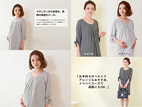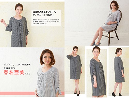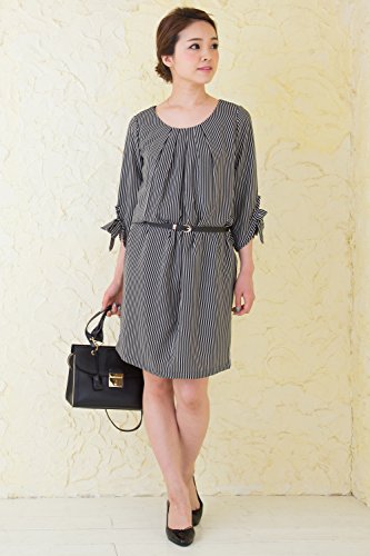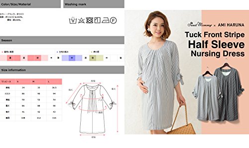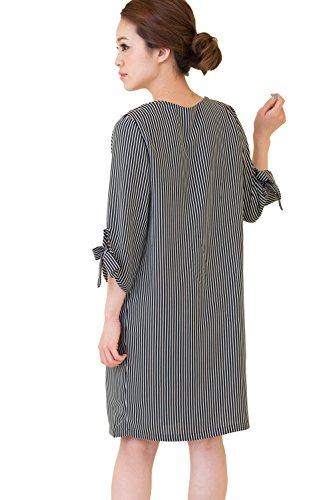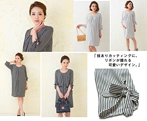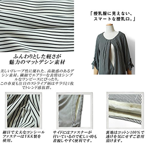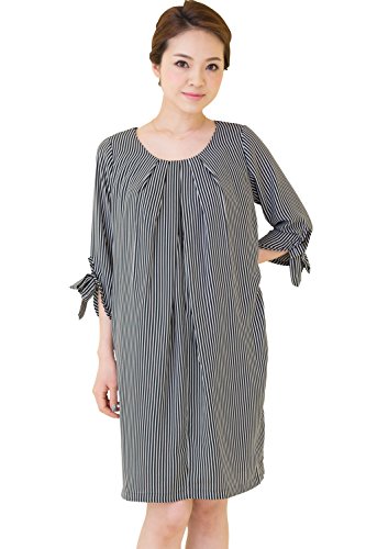 Sweet Mommy 着痩せピンストライプ 袖リボンワンピ 授乳口付き ワンピース 5分袖 コットン100%裏地付き 小さいサイズ お宮参り オフィス 春 夏 産前産後 授乳服 マタニティ M ブラック