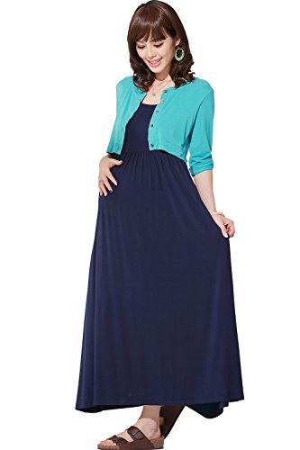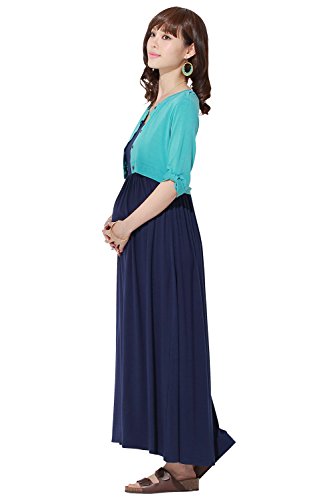 Sweet Mommy ショートカーデ重ね着風 とろみマキシ 袖2WAY 授乳口付き ワンピース 貝ボタン 意匠登録済み商品 着痩せ リゾート ママのための短め丈 ワンピース 春 夏 産前産後 授乳服 マタニティ L ターコイズ