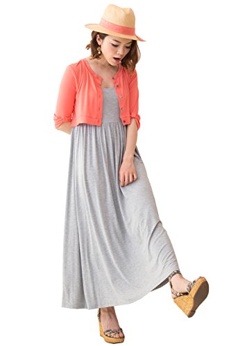 Sweet Mommy マタニティ 授乳服 ワンピース 授乳口付き マキシ ショートカーデ重ね着風 大きいサイズ 袖2WAY 意匠登録済み 貝ボタン ママのための短め丈 リゾート 春 夏 産前産後 M コーラルピンク