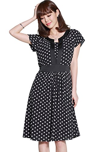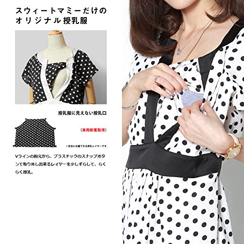 スウィートマミー (Sweet Mommy) ドット シフォン サテン トリミング 授乳 ワンピース 授乳服 / マタニティ L ブラック×ブラック