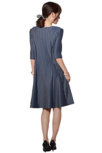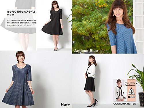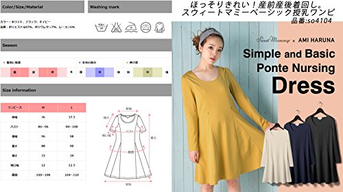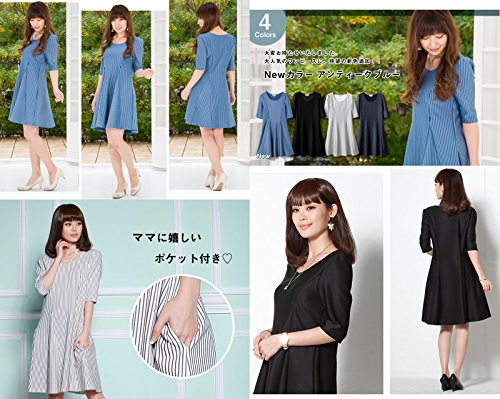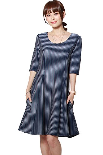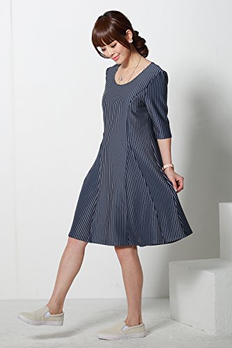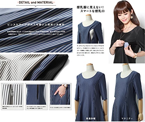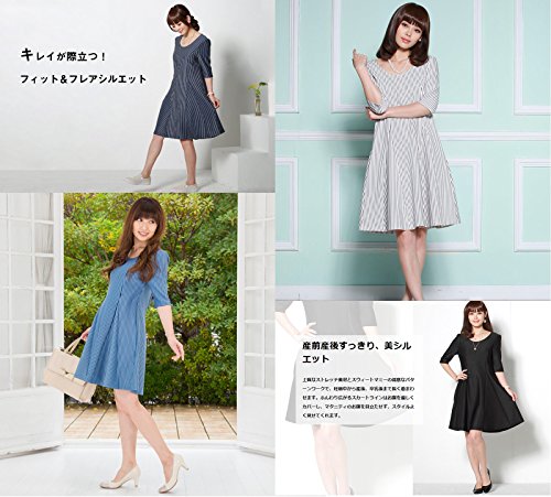 Sweet Mommy スリムフィット フレア ストライプ 美シルエット 授乳ワンピース ポンチ素材 着痩せ ポケット付き 産前産後 マタニティ 授乳服 L ネイビー