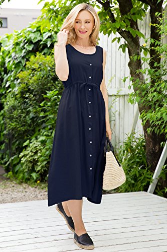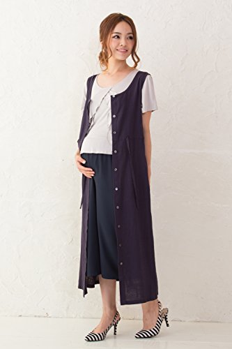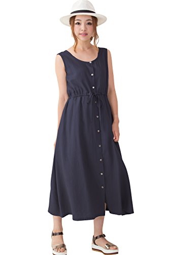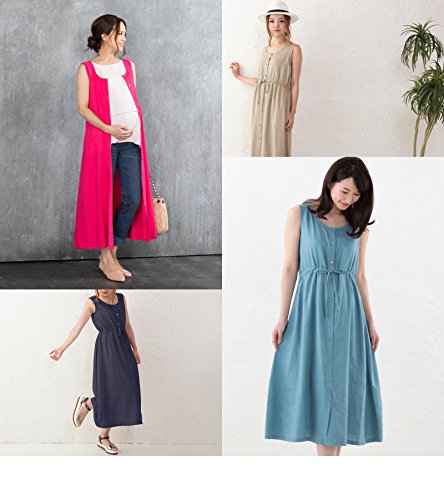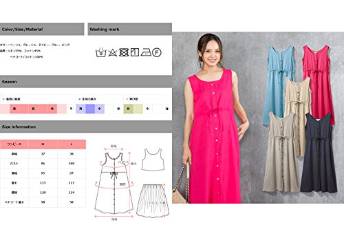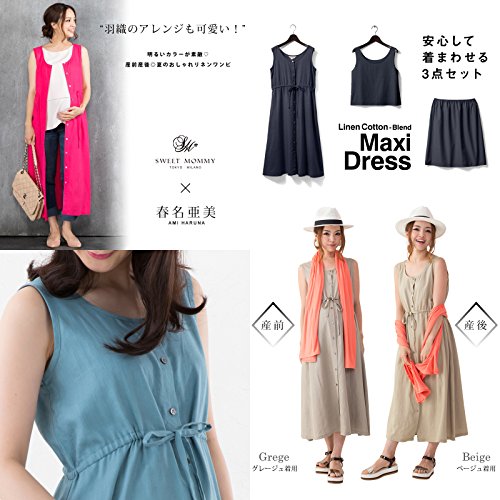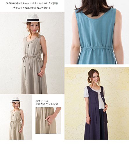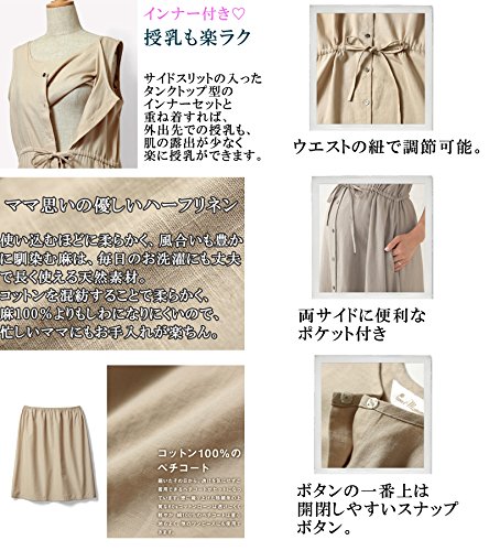 Sweet Mommy リネンワンピ 授乳タンク ペチコート 3点セット ウエスト調節可能 ポケット付き しわになりにくいハーフリネン 授乳用タンクトップ ワンピース ロングジレ カーディガン ノースリーブ 春 夏 産前産後 授乳服 マタニティ L ネイビー