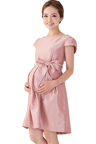 Sweet Mommy 【日本製】シャンブレーシャンタン リュクス上品ドレス キャップスリーブ ウエストリボン プリンセスライン フォーマル ワンピース 授乳ワンピ ママドレス ママワンピ お呼ばれ パーティー 結婚式 お宮参り マタニティ 授乳服 LL アプリコット