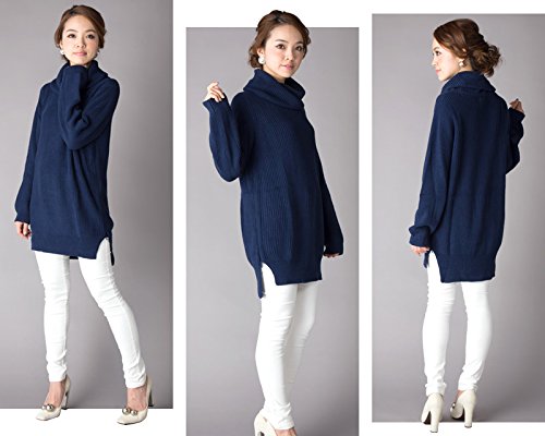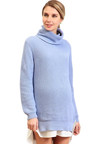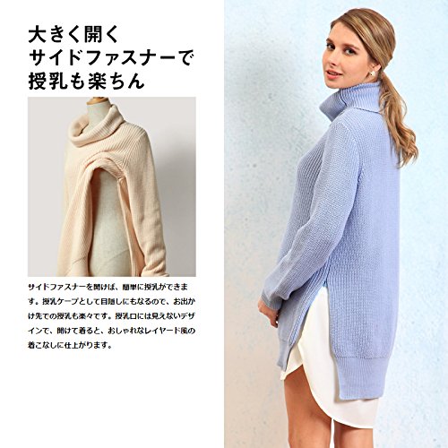 スウィートマミー (Sweet Mommy) オーガニックコットン100% 裾スリット タートルネック ニット チュニック 授乳服 / マタニティ L パープルサックス