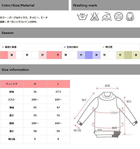- サイズ(cm): M(肩幅36,バスト100-,裾幅45,着丈70,腹囲100-,袖丈58,袖口幅9), L(37.5,104-,47,72,104-,59,9)